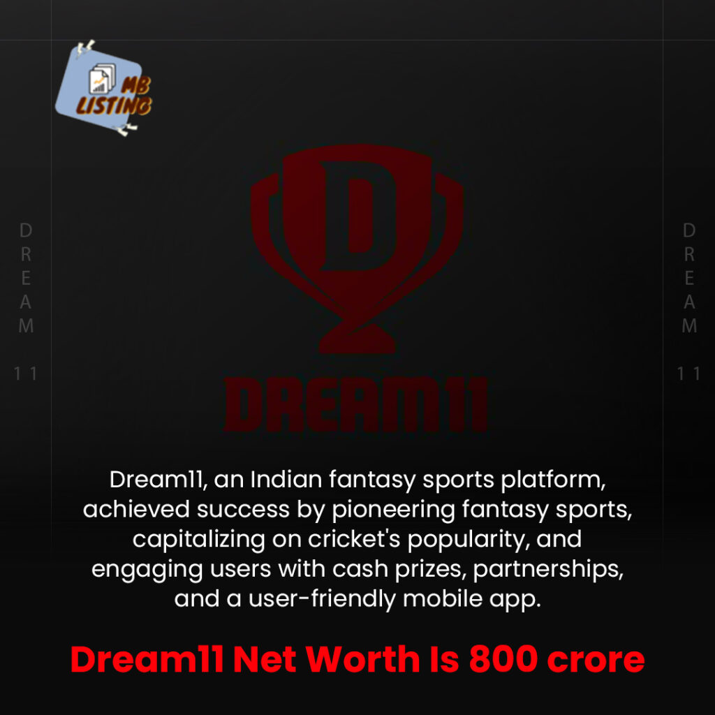 Dream11, the trailblazing Indian fantasy sports platform, has etched its name in the annals of success through visionary innovation and strategic foresight. By pioneering the concept of fantasy sports in the country, Dream11 harnessed the immense popularity of cricket and transformed it into a dynamic arena of engagement, entertainment, and opportunities.Dream11’s net worth stands at an impressive 800 crore. This meteoric rise speaks volumes about its profound impact on the sports and gaming landscape, as well as the trust it has garnered from its users. Dream11’s legacy continues to grow, promising a future brimming with limitless possibilities.
