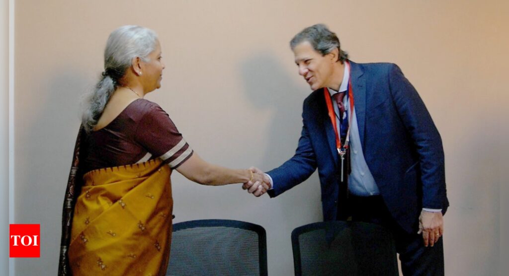 NEW DELHI: Finance minister Nirmala Sitharaman on Thursday met Brazil’s minister of economy Fernando Haddad and discussed various issues of mutual interest, including the strengthening of Multilateral Development Banks (MDBs). She also met UK Chancellor of Exchequer Jeremy Hunt and discussed Bilateral Investment Treaty among other issues.