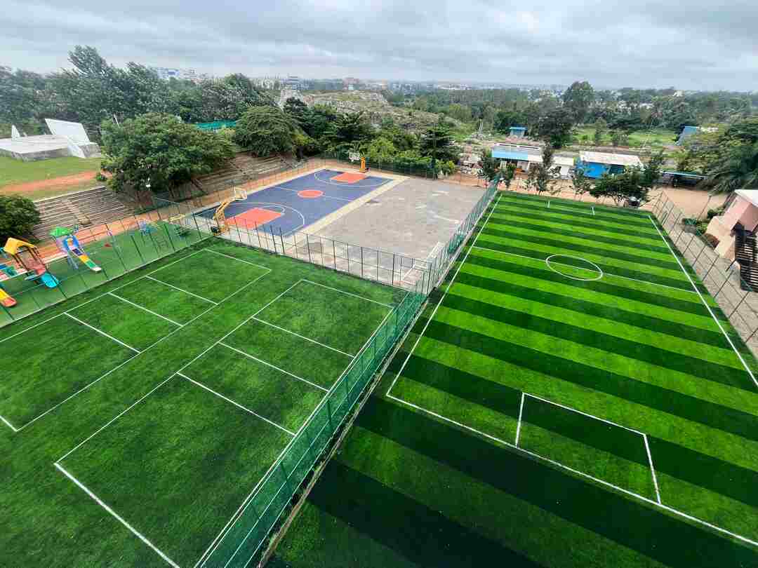 At Treamis School, Gallant Sports was tasked with designing a state-of-the-art facility within a limited space to accommodate various outdoor sports, including football, volleyball, cricket, and kho-kho. The school’s emphasis on balancing academics and sports led them to seek an infrastructure solution that would maximise the use of available space. Gallant Sports responded with an innovative design that featured a combination of 50mm and 40mm surfaces, providing durability and safety for the students. The football turf, with a 50mm pile height, meets international standards for safety and playability, while the 40mm variant ensures a cushioned surface for volleyball. Despite challenges such as rainy weather and limited space, the project was successfully completed, offering a facility that is playable 365 days a year with minimal maintenance, much to the delight of the students and parents alike.